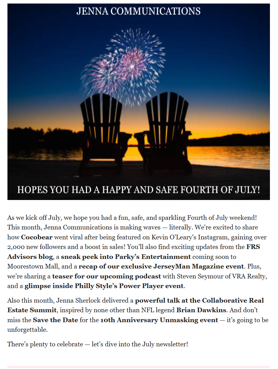 This package combines all of our service packages into one giant deal. If you need media exposure, then look no further. With our expertise, we have secured exposure for clients on outlets such as NBC News, The New York Post, The Associated Press, Fox Business, and more. With connections and reach throughout all forms of media, Jenna Communications will find you the perfect outlet to effectively convey your message to your target audience.
